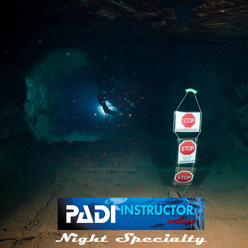Obwohl Du an diesem Tauchplatz – Tagsüber – schon oft getaucht bist – tauchst du dieses Mal in eine gänzlich neue Welt ein. Du siehst wie die Umgebung im Licht deiner Tauchlampe zu neuem Leben erwacht. Die Landschaft verändert sich, tagaktive Lebewesen haben sich zurück gezogen und die nachtaktiven Unterwasserbewohner kommen zum Vorschein. Wenn du schon immer wissen wolltest, was Nachts unter Wasser los ist, dann melde dich zum PADI Spezialkurs Nachttauchen an.